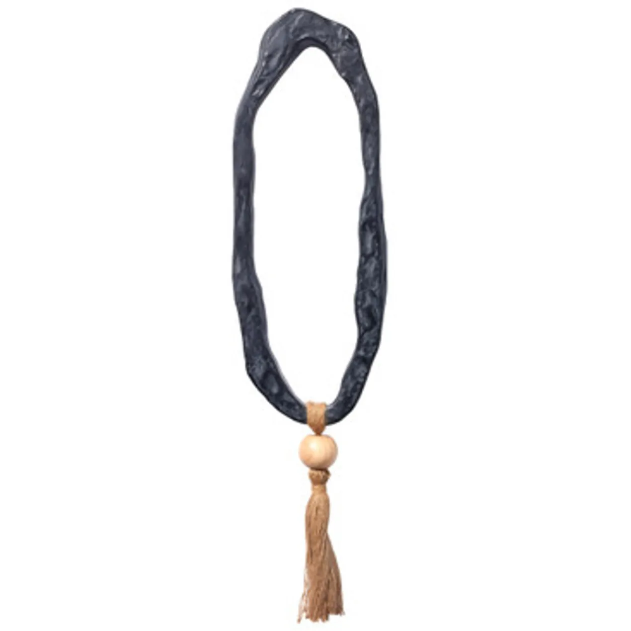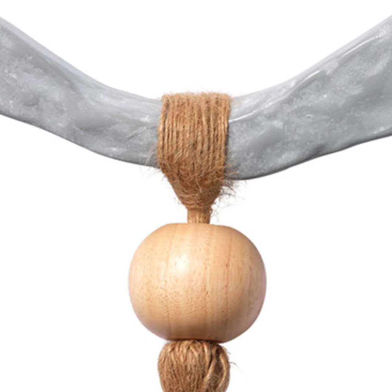 Inspired by the East, this set of three decorative hangings will add instant sophistication to any decor. These three organic, free-form resin rings will draw the eye to the expertly hand-knotted sisal rope and single natural wood bead. Soothing shades of blue, gray, and white create a feeling of calm. Generously sized, each piece is artisan crafted and each set is unique. The finish, wood grain, and exact measurements will vary.