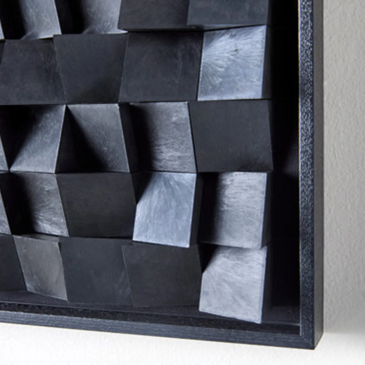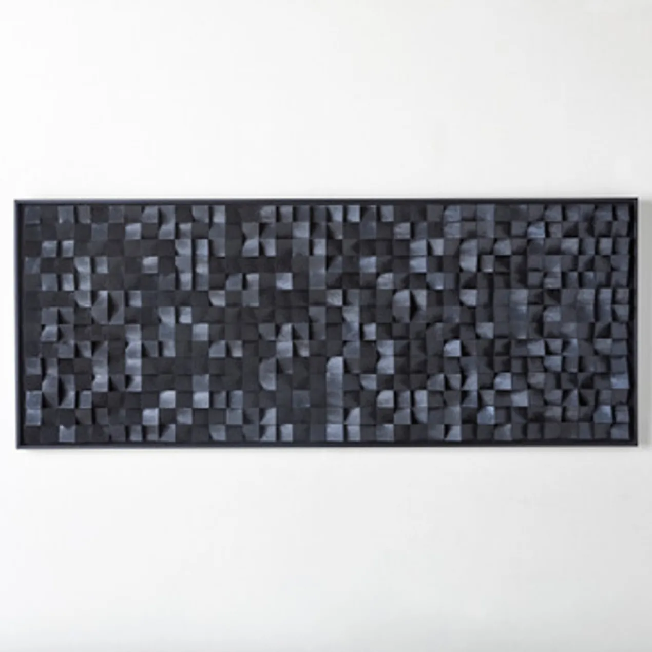 Create a space for wall decor that speaks to you. Nightfall is a conversation starter for sure. This abstract arrangement of cut black blocks is set in a low-profile black frame and will add visual interest to any wall.
