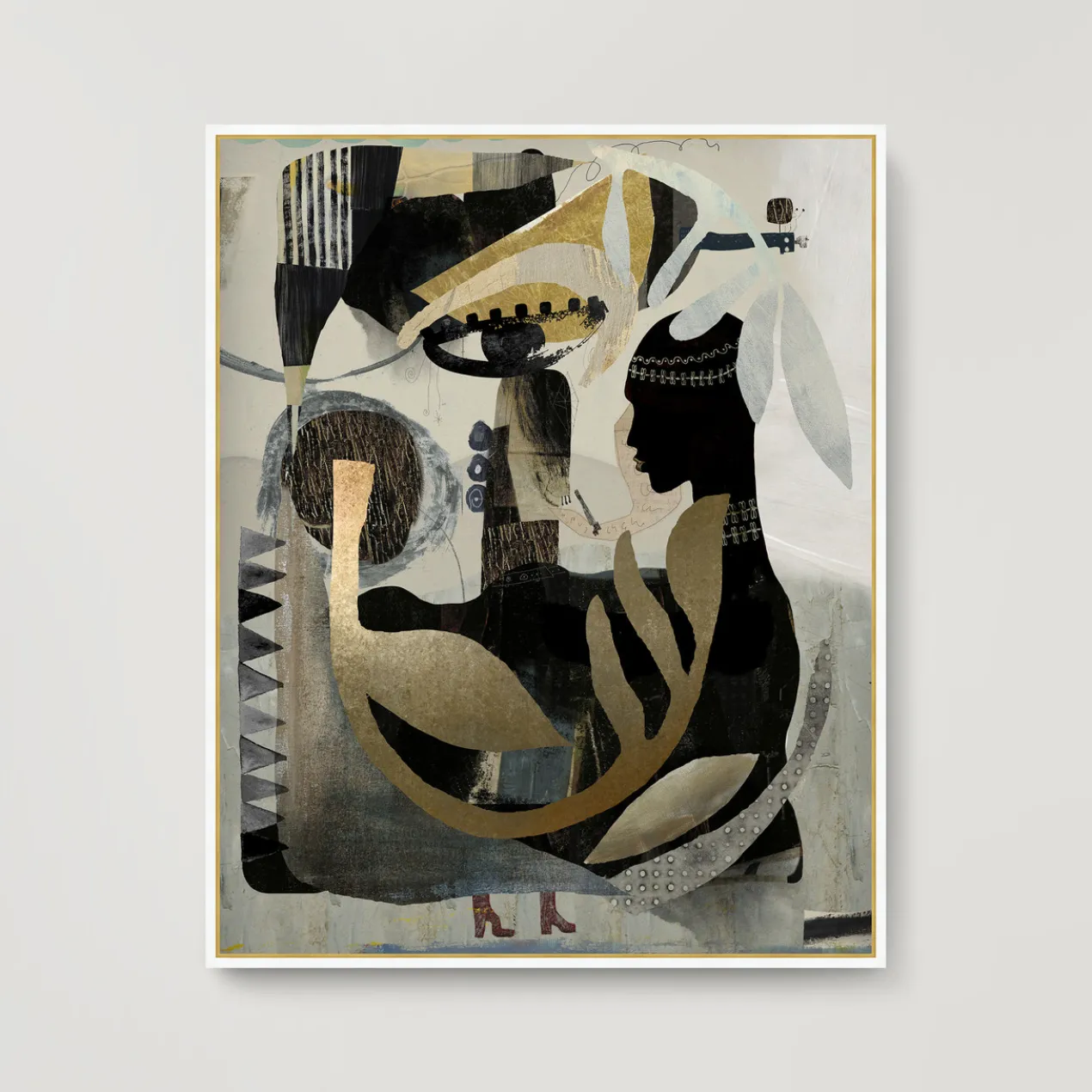 Gallery-wrapped canvas with gilded gold accents and hand-applied image brush gel finish.