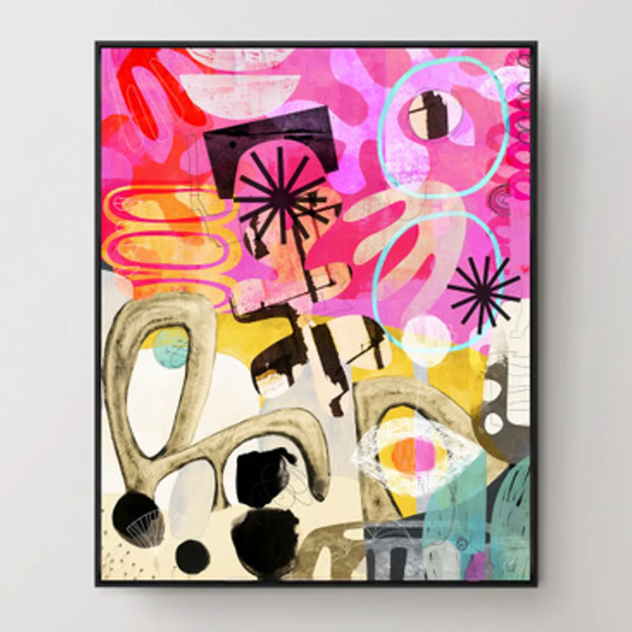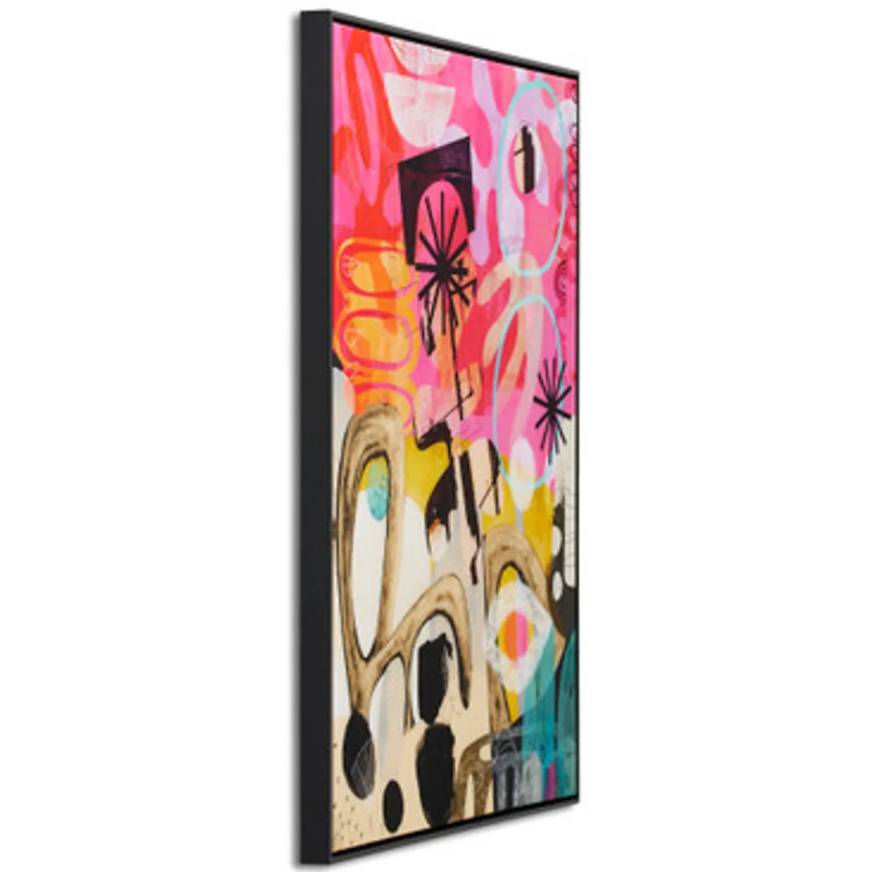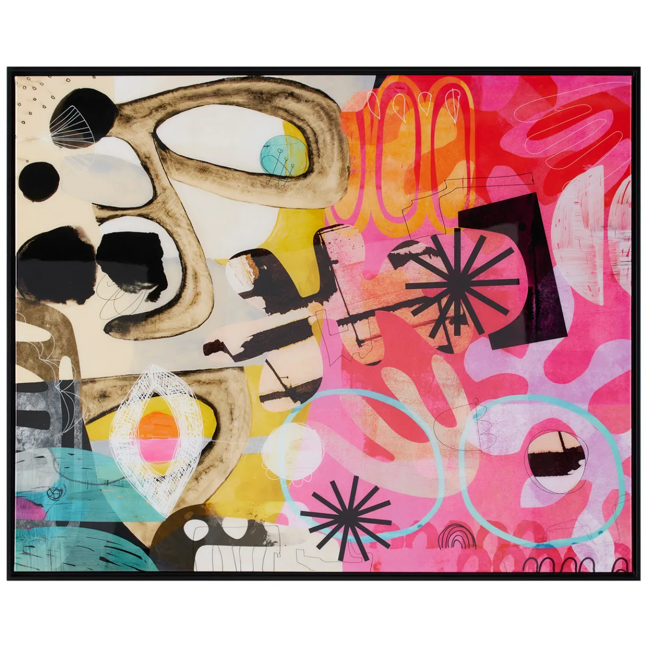 Printed on canvas with a glossy finish and set in a black frame, this striking work from Nikki Chu lends a modern mood and vibrant color to the wall.