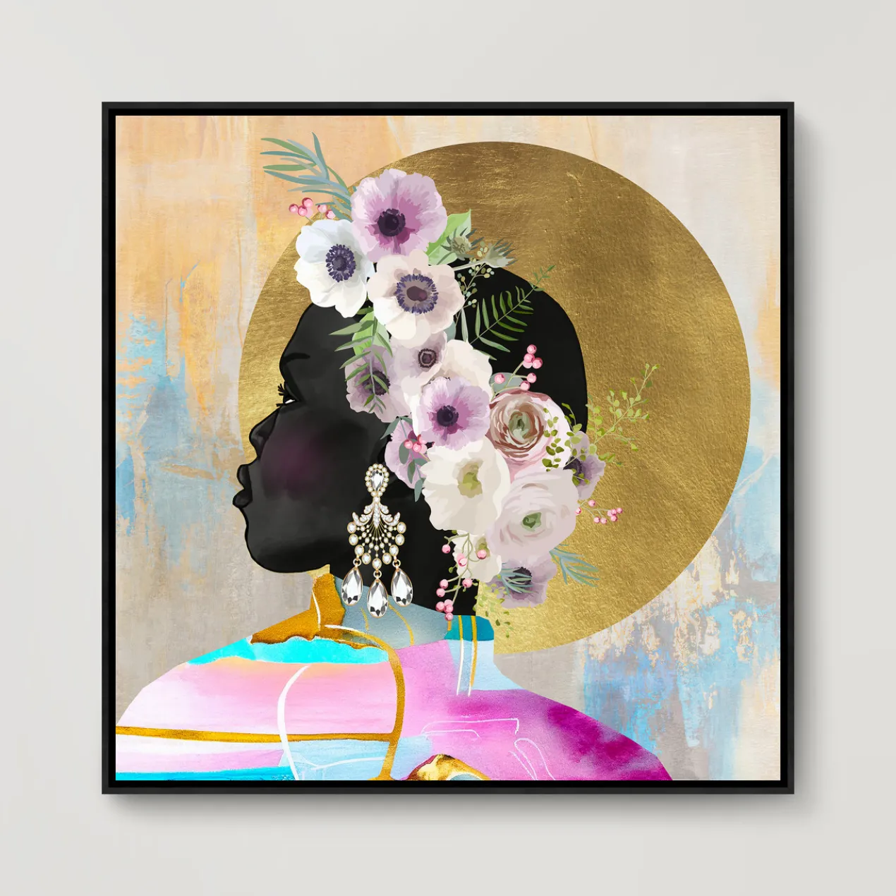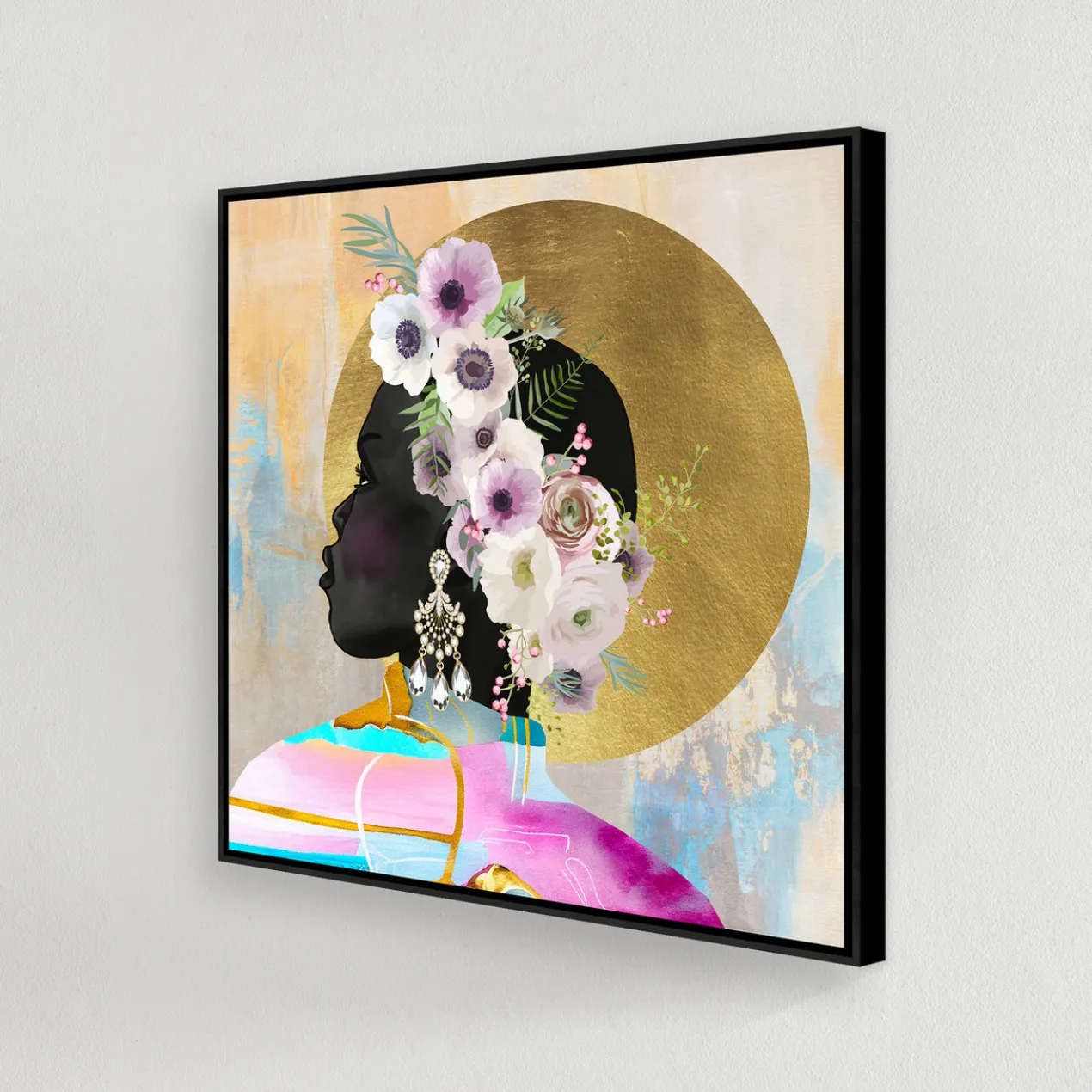 Gallery-wrapped canvas with gilded gold accents and hand-applied image brush gel finish.