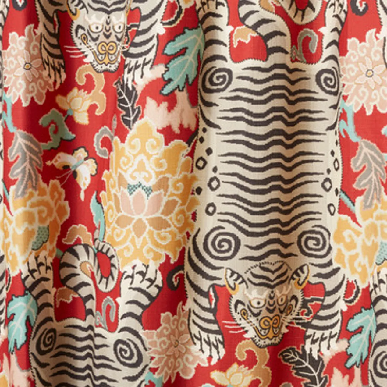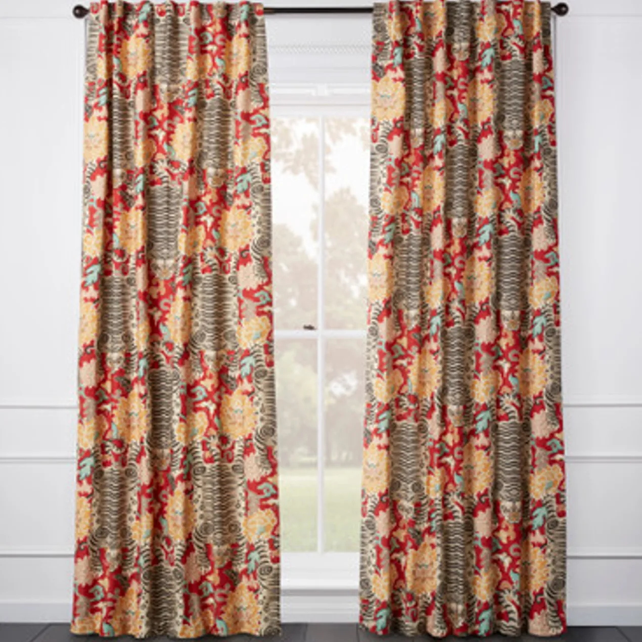 Crafted of cotton with a lively tiger print, our Nimer Panel enriches any interior with bold pattern and a touch of whimsy. Customizable to fit your space, it’s offered in four lengths (84”, 96”, 108”, or 120”), two header styles (rod pocket or inverted pleat), and two colorways (gold or grey). Panel includes lining. Sold as a single panel.