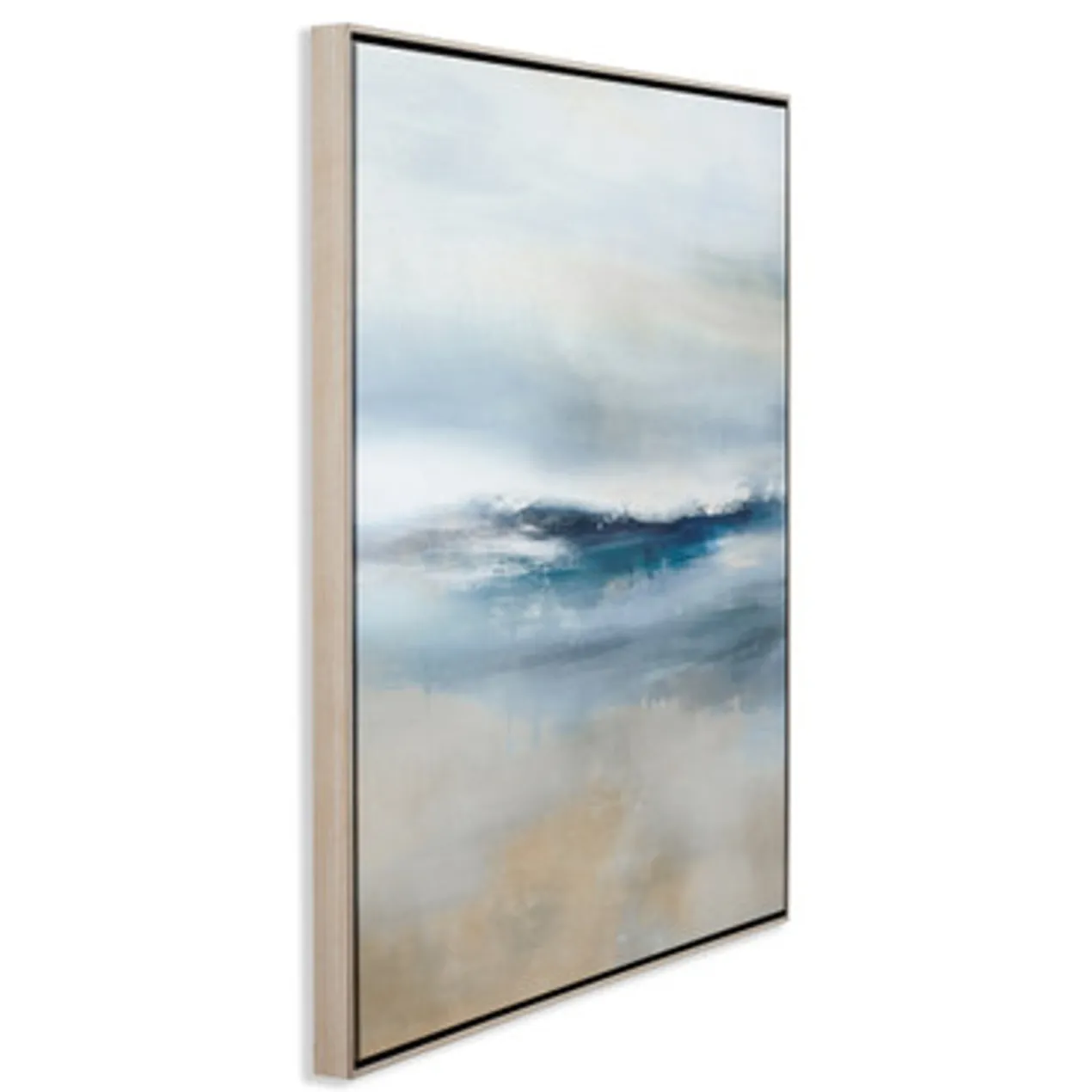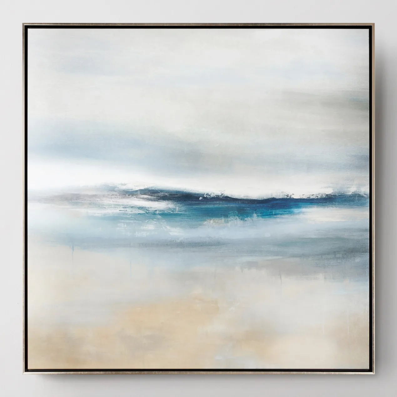 Rendered with a hazy, atmospheric quality, this abstraction of a seascape from artist Mari Urasawa adds a serene, modern note to any space. Printed on gallery-wrapped canvas with an image brush gel finish for added texture, this piece is displayed in a silver floater frame.