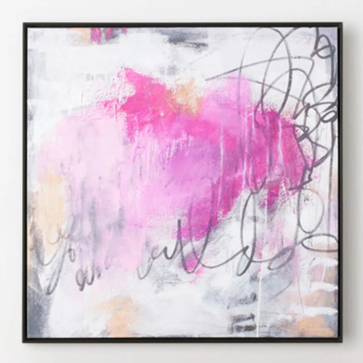 Set off with a black floater frame, this abstraction from artist Ann Golumbuk adds a modern note and vibrant color to the wall.