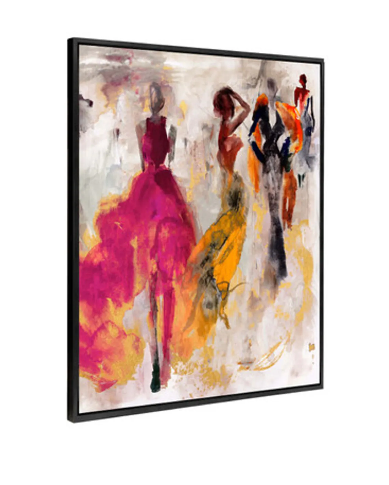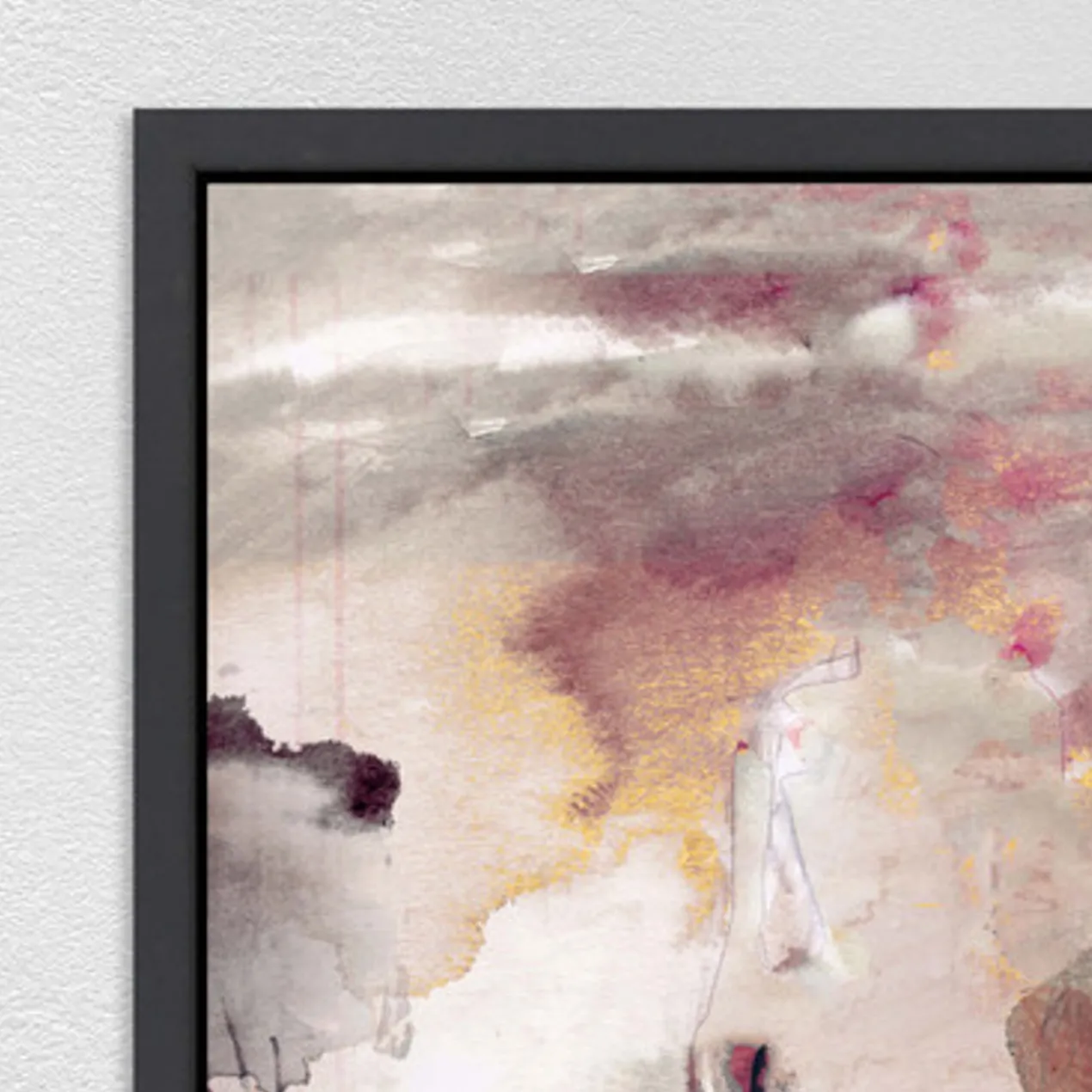 Gallery-wrapped canvas with hand-applied image brush gel and gold gilding. Set in a black floater frame.