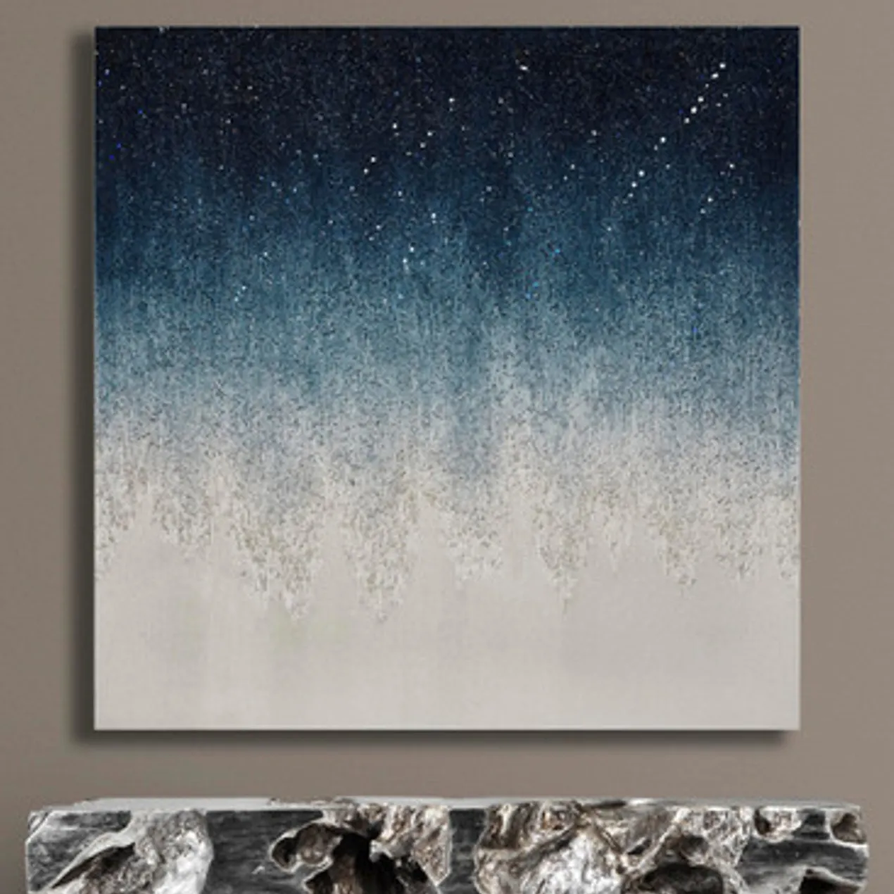 Hazy brushstrokes add an ethereal quality to this original work by artist Beverly Fuller, while glitter embellishments add a hint of sparkle.