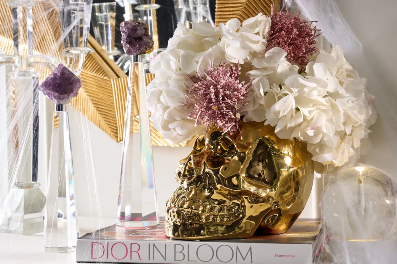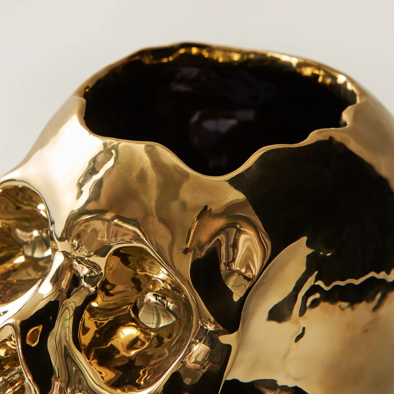 Perfect for creating a festive (and frightening) atmosphere this Halloween, this skull vase is finished in gleaming gold.