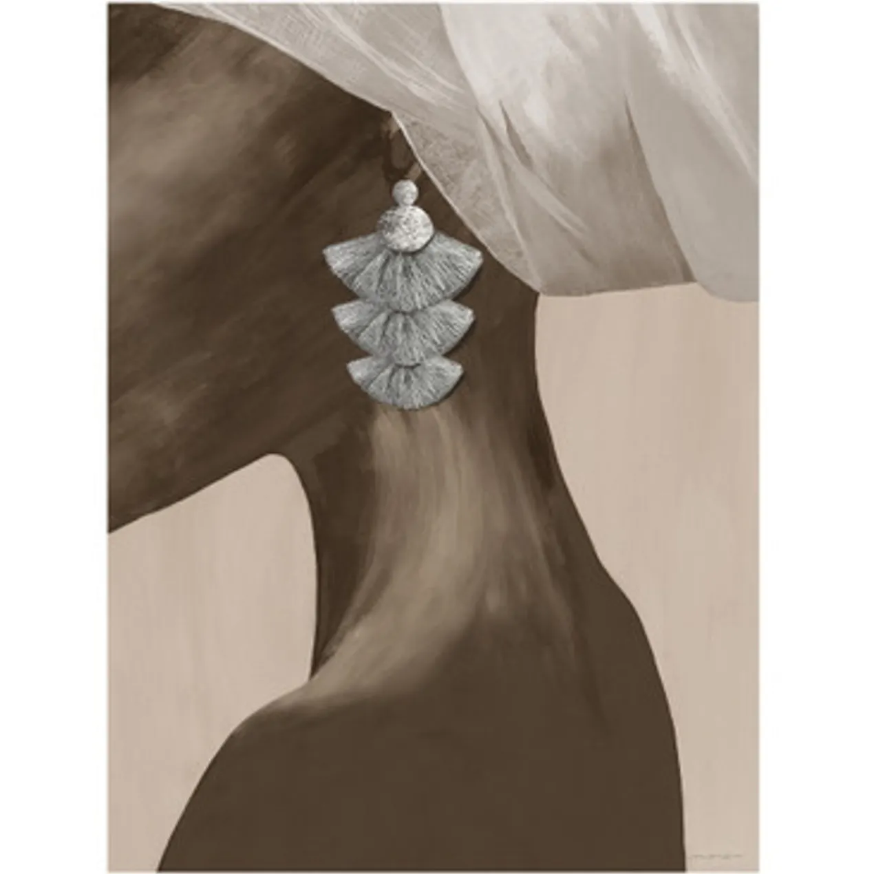 Soft feminine lines create an elegant side profile of a beautiful African American woman wearing a headscarf and three-tier earring.