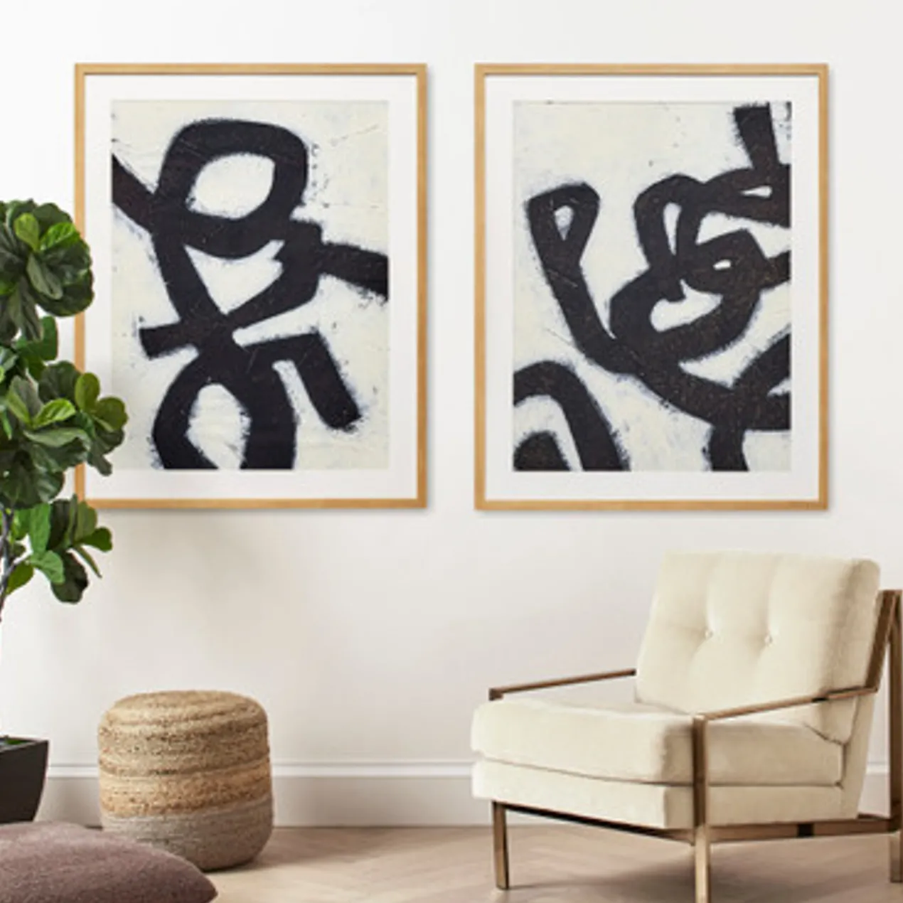 Bold in black and white, this abstraction from artist June Erica Vess is ideal for bringing a modern note to your wall. Printed on paper, this piece is matted and displayed in a natural wood frame.