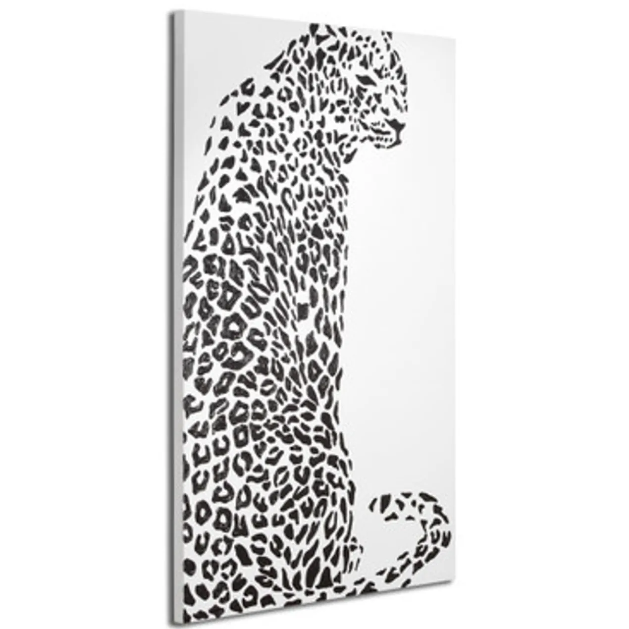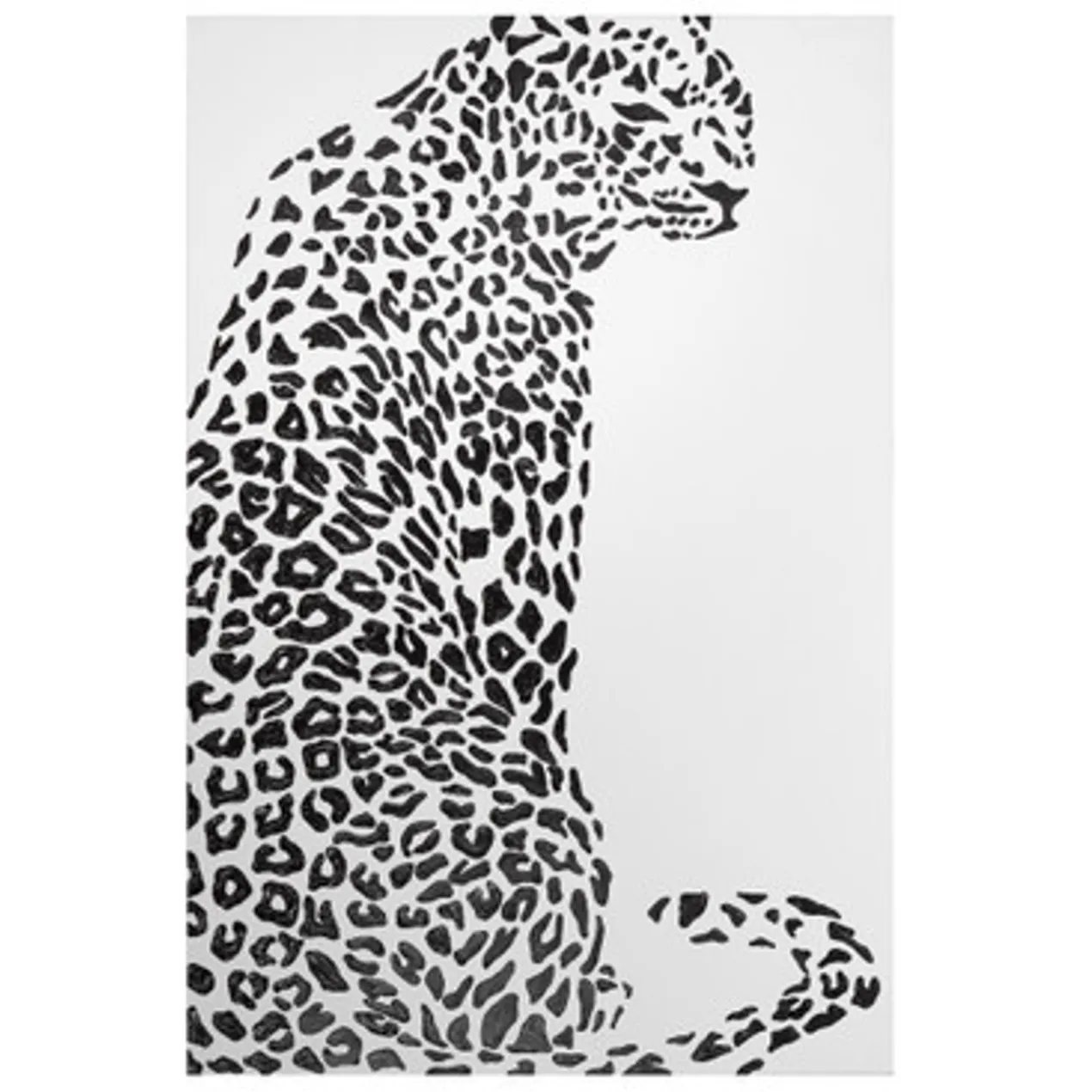 Rendered with thick, glossy black paint, the spots of the cheetah in this original work from artist Beverly Fuller pop against a white background. Painted on canvas, this piece is unframed.